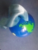 Сегодня мы играли с лентой: тянули ее из синего шара, потом обратно ее прятали, и снова ее искали, и обратно прятали, и т. д.!!! Это занятие нас увлекло. я говорила: "Здравствуй, синий шар Земной. скажи нам, где же твоя голубая речушка???" мы вертели его и в конце концов, конечно же находили:) со словами " А, вот она течет!!! Спасибо тебе, синий шар Земной!!! и повторяли заново! увлекательно получилось!!!
