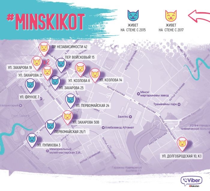 «Мы очень рады, что проект #Minskikot стал так популярен среди минчан. По нашим данным, паблик аккаунт проекта является одним из лидеров по количеству подписчиков в Беларуси. У нас получилось действительно интересное и вдохновляющее сотрудничество с художниками. Уверена, прогулка по местам «проживания» котов станет новой городской традицией не только для жителей Минска, но и для гостей столицы», — комментирует Яна Рожкова, Директор по связям с общественностью Viber в СНГ.