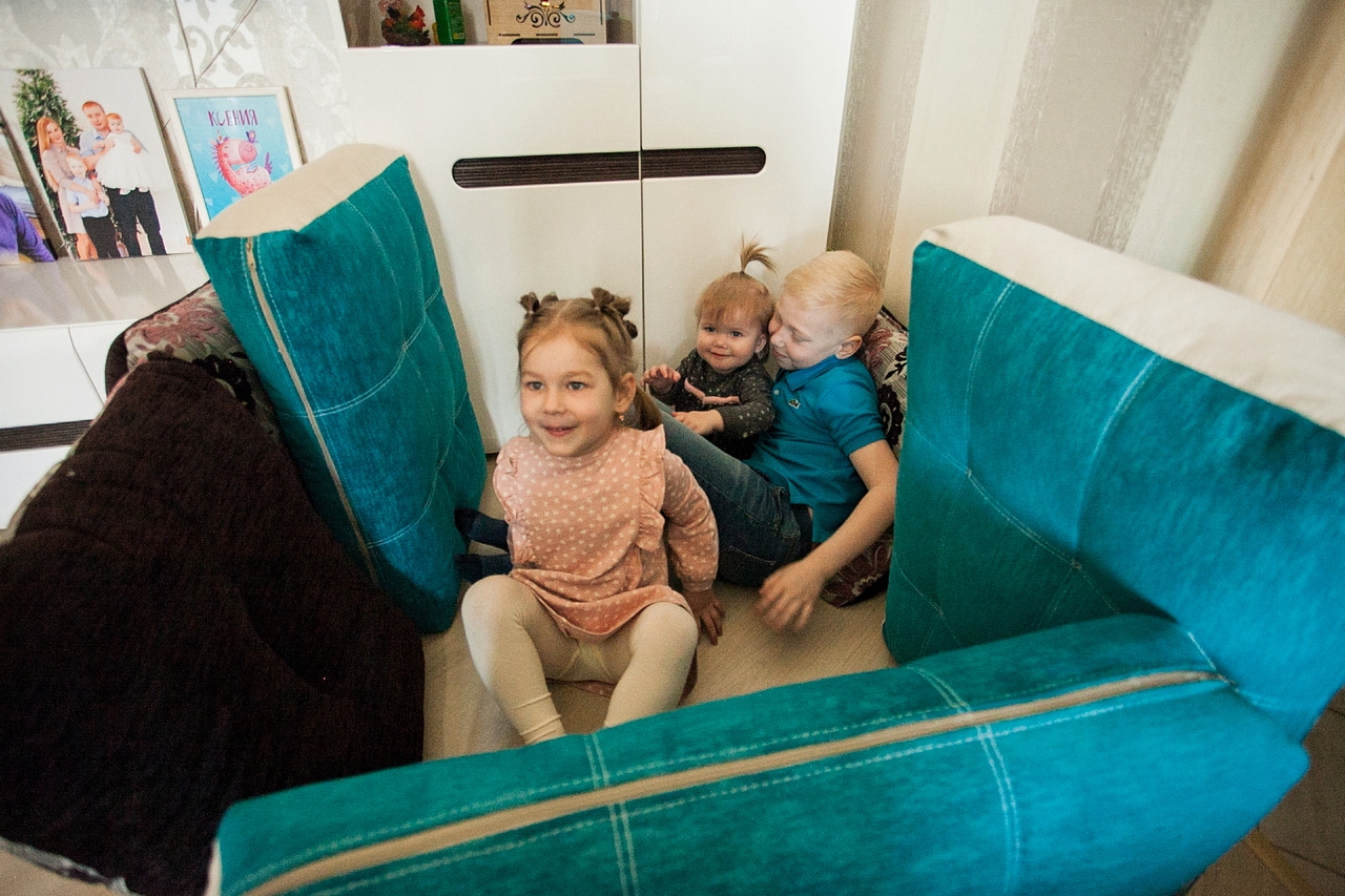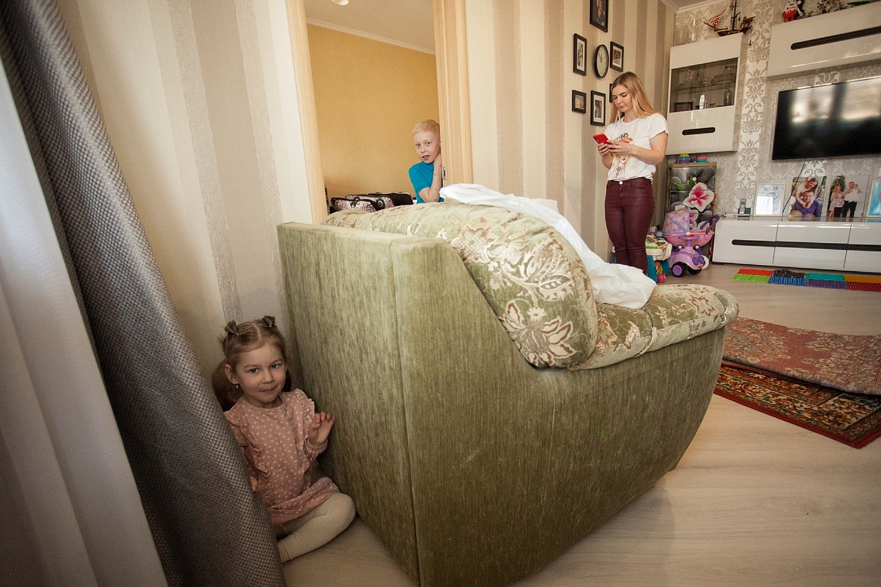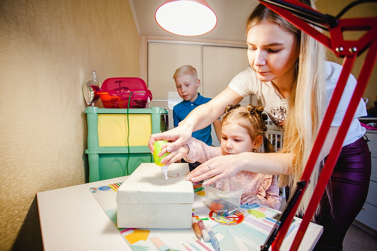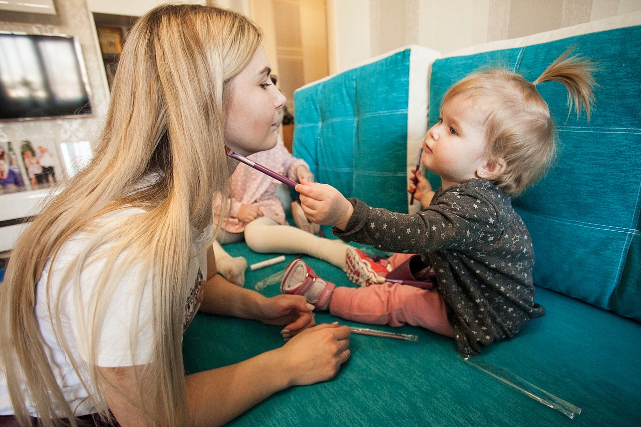 За помощью в реализации наших идей мы обратились к минчанке Анастасии Бразинской, которая сейчас находится в декрете с полуторагодовалой дочерью Ксенией. Развлекать сестренку дома помогает брат Леша — мальчику 7 лет. А еще в гости по рабочим дням к семье приходит 3-летняя девочка Арина — это племянница нашей героини. Мама девочки работает, от детского сада в семье вынужденно отказались, поэтому отводят ребенка к родственникам.