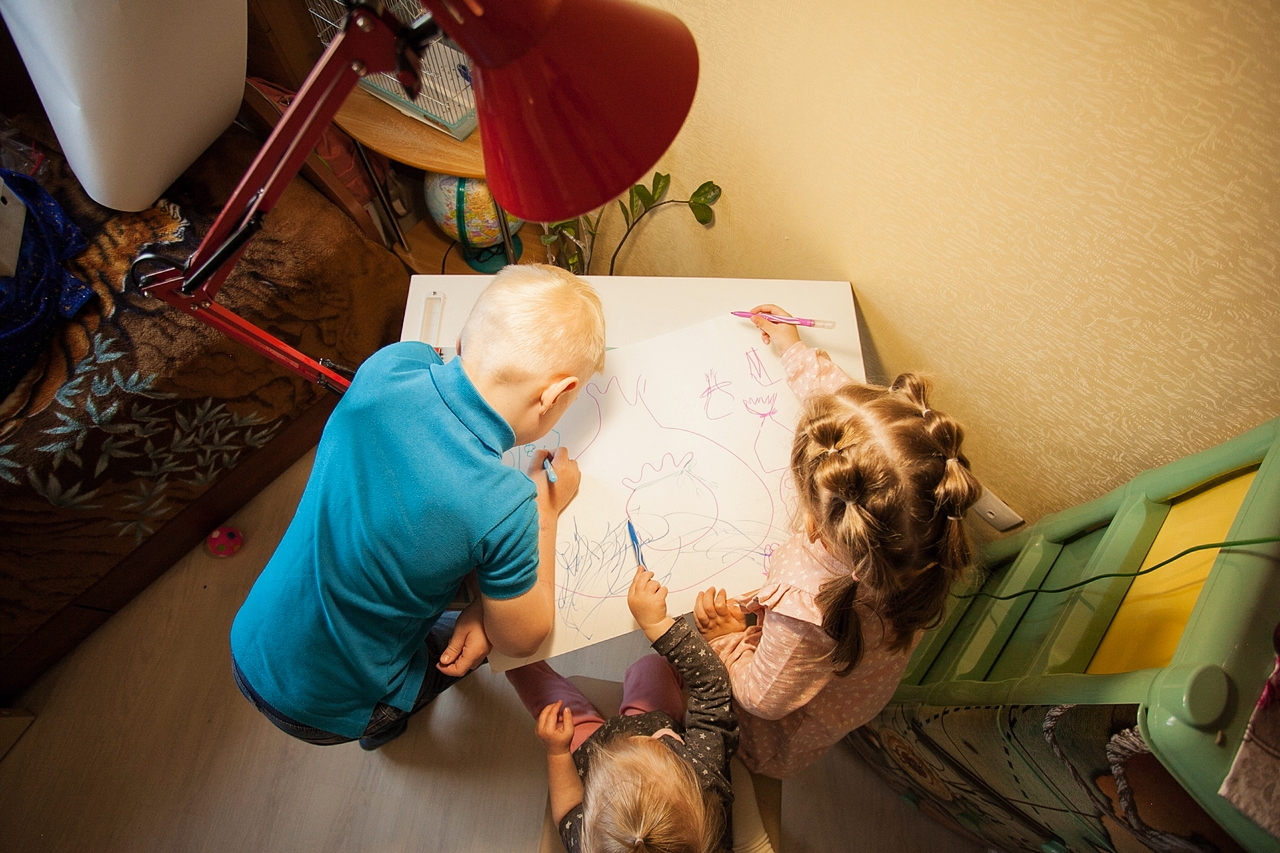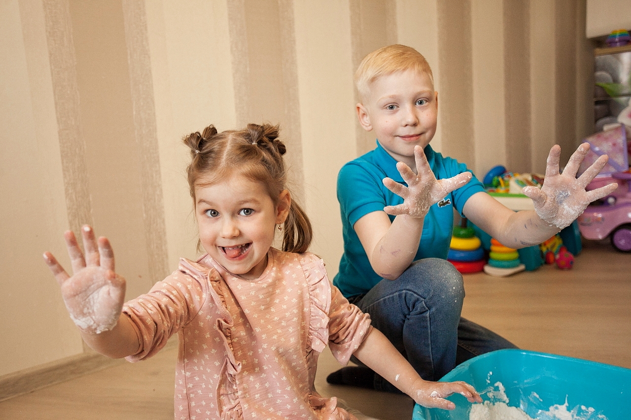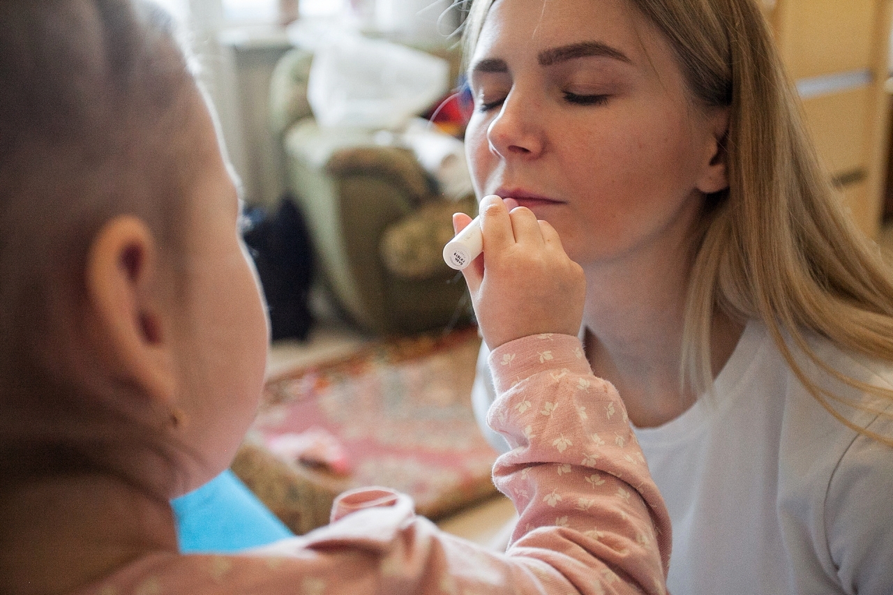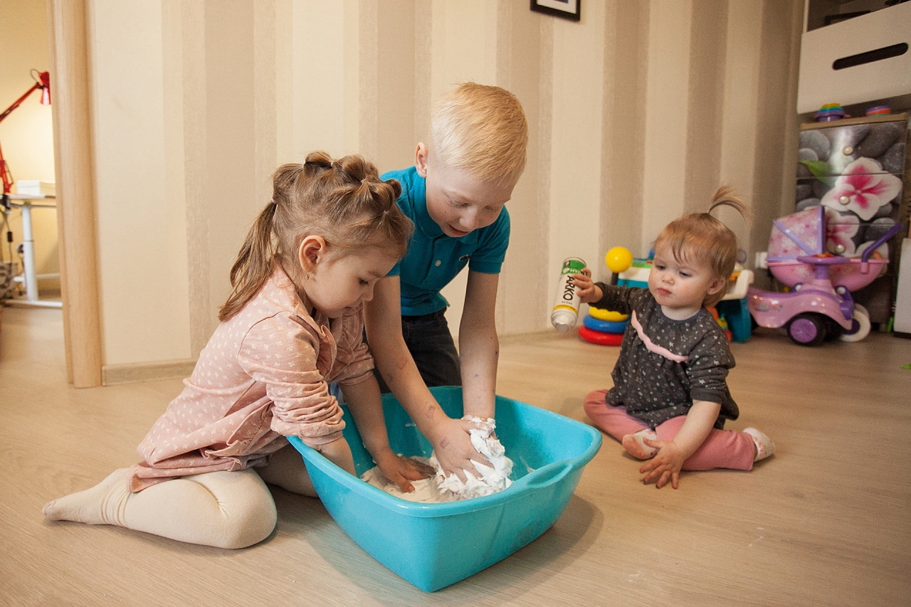 За помощью в реализации наших идей мы обратились к минчанке Анастасии Бразинской, которая сейчас находится в декрете с полуторагодовалой дочерью Ксенией. Развлекать сестренку дома помогает брат Леша — мальчику 7 лет. А еще в гости по рабочим дням к семье приходит 3-летняя девочка Арина — это племянница нашей героини. Мама девочки работает, от детского сада в семье вынужденно отказались, поэтому отводят ребенка к родственникам.
