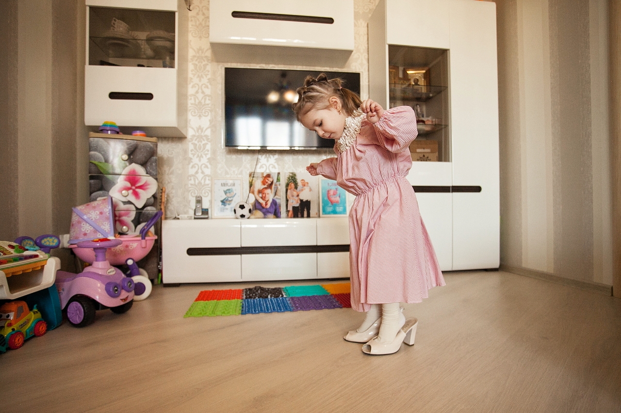 С новыми силами приступаем к очередному развлечению. Устраиваем «показ мод», сами примеряем кое-что из детского гардероба, а детям даем возможность почувствовать себя взрослыми и отдаем на примерку свои вещи и обувь. Обязательно фотографируем то, что получилось — для домашнего архива.
