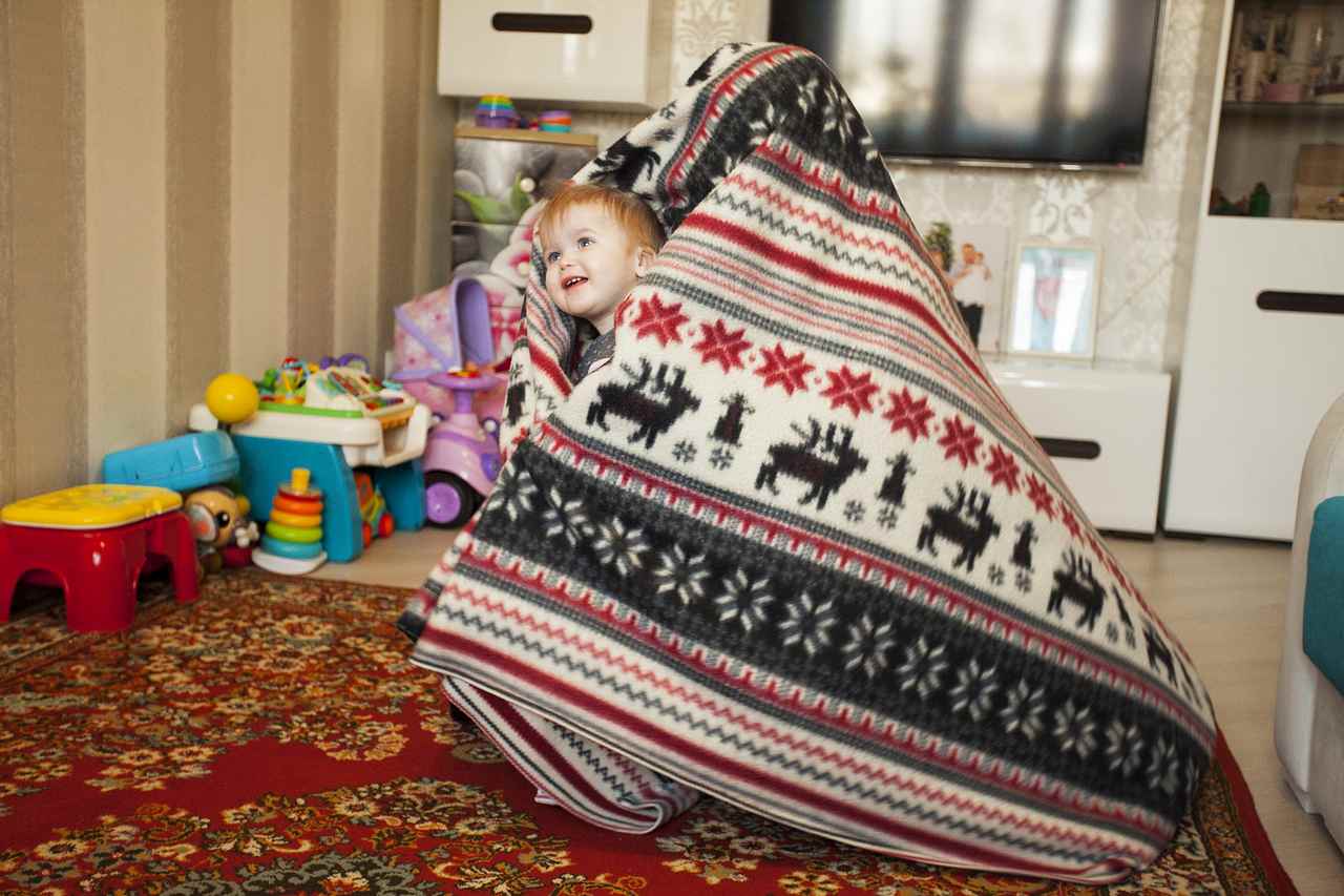 После активной игры предложим детям соорудить шалаш. Если вы спросите детей, они подтвердят, что это самое увлекательное развлечение, которое можно придумать с покрывалами и подушками. От родителей всего лишь требуется инициатива и немного фантазии. Так, например, можно построить не шалаш, а замок принцессы, лесную хижину, бомбоубежище, в общем, все что угодно. Внутри такого домика можно поселить игрушки, а также установить лампу или фонарик.