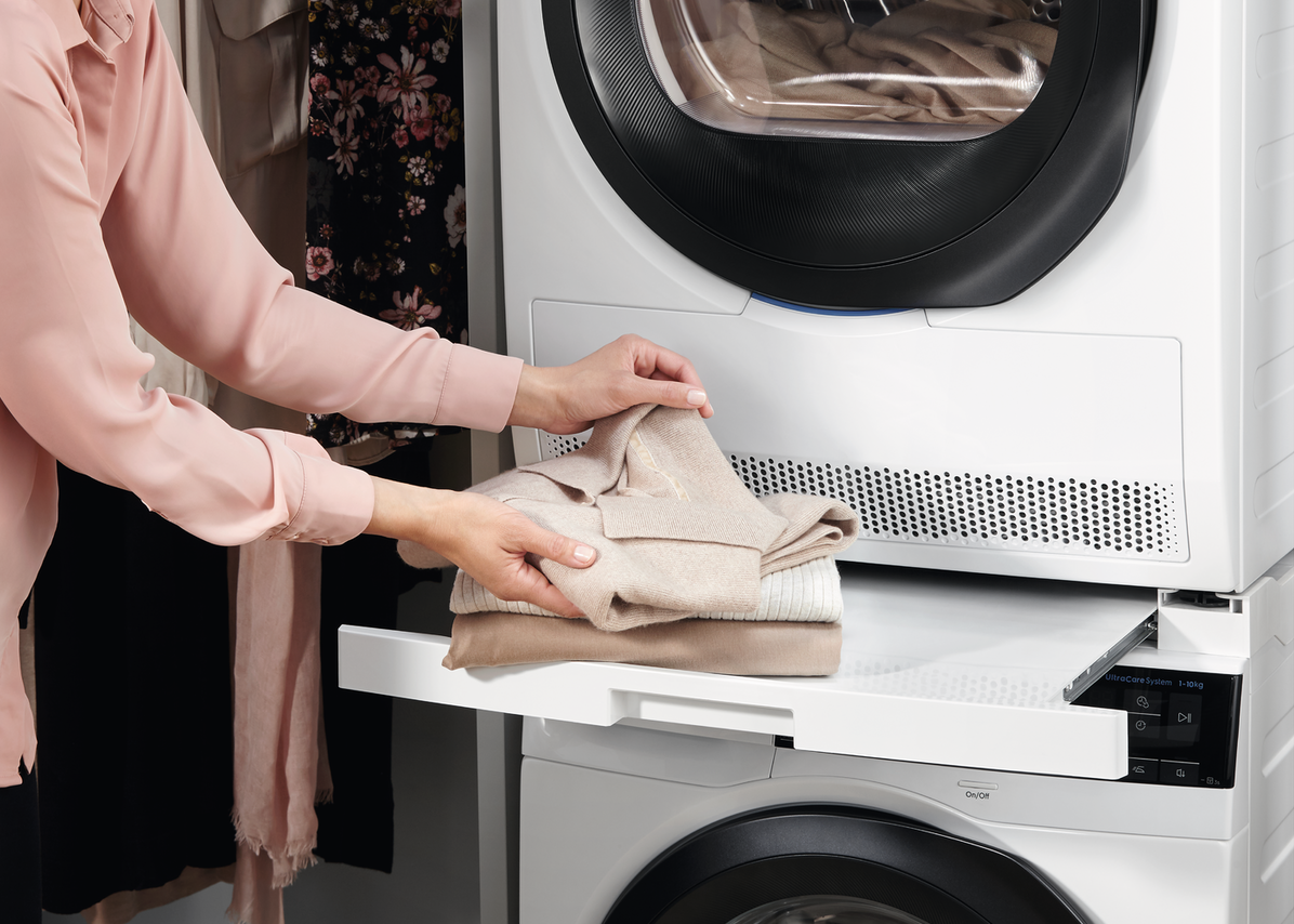 Можно выбрать вариант “2 в 1” — стирально-сушильную машину. Такой вариант подходит, если необходимо сэкономить пространство в ванной или кухне. Но зачастую в таких моделях максимальная загрузка для стирки значительно превосходит по весу загрузку для сушки. Это значит, что после этапа стирки хозяевам придется частично разгрузить машину, чтобы высушить часть вещей. Альтернативой может стать установка сушильной машины над стиральной с помощью специальных креплений. Если пространство позволяет, такой вариант предпочтителен.