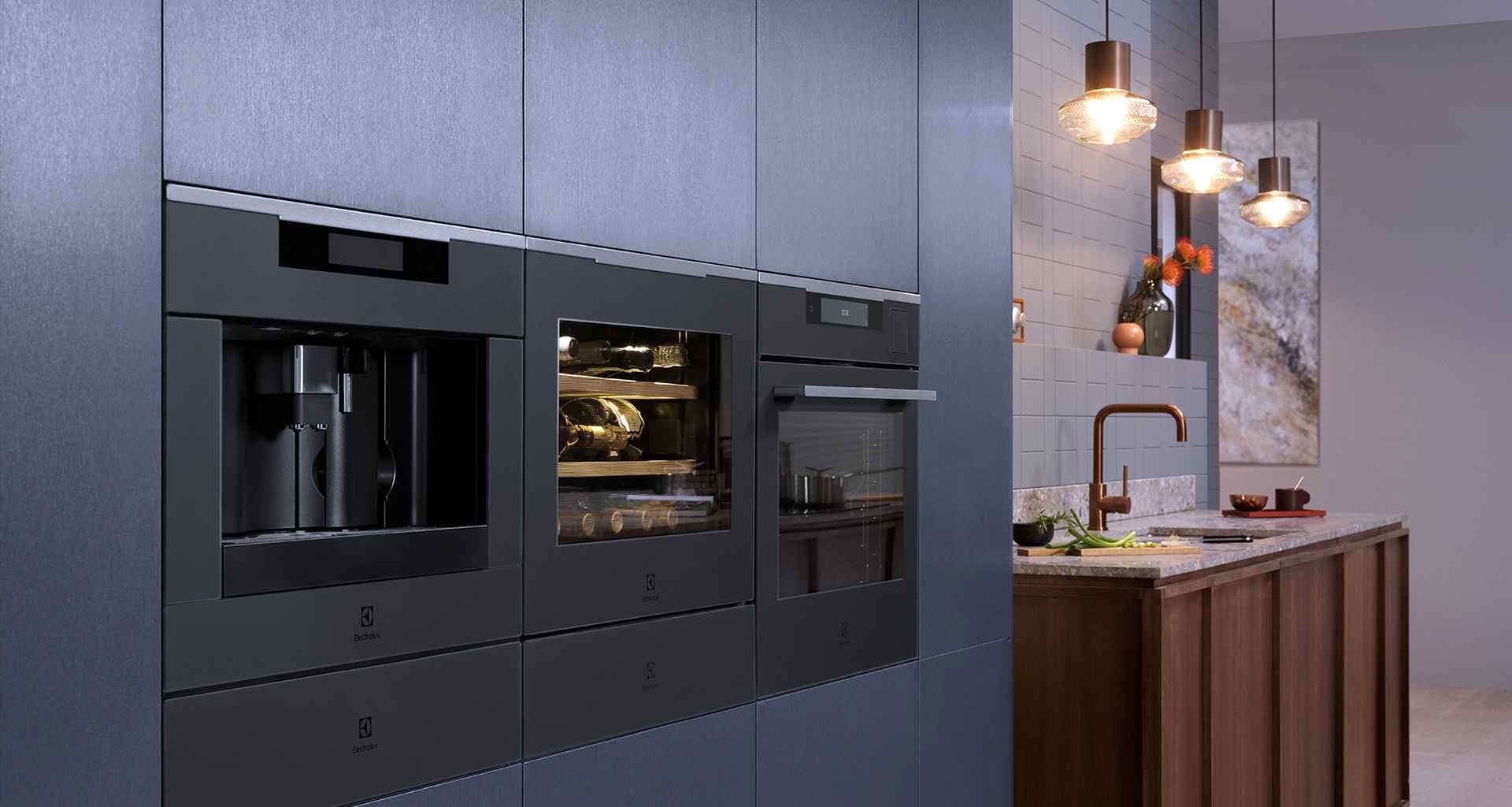 Сейчас стало популярно устанавливать в кухне несколько “колонн” и встраивать в них полный набор техники: духовые шкафы, печи СВЧ, кофе-машины, пароварки. Все зависит от устройства и комбинации мебели в кухне и размеров помещения.