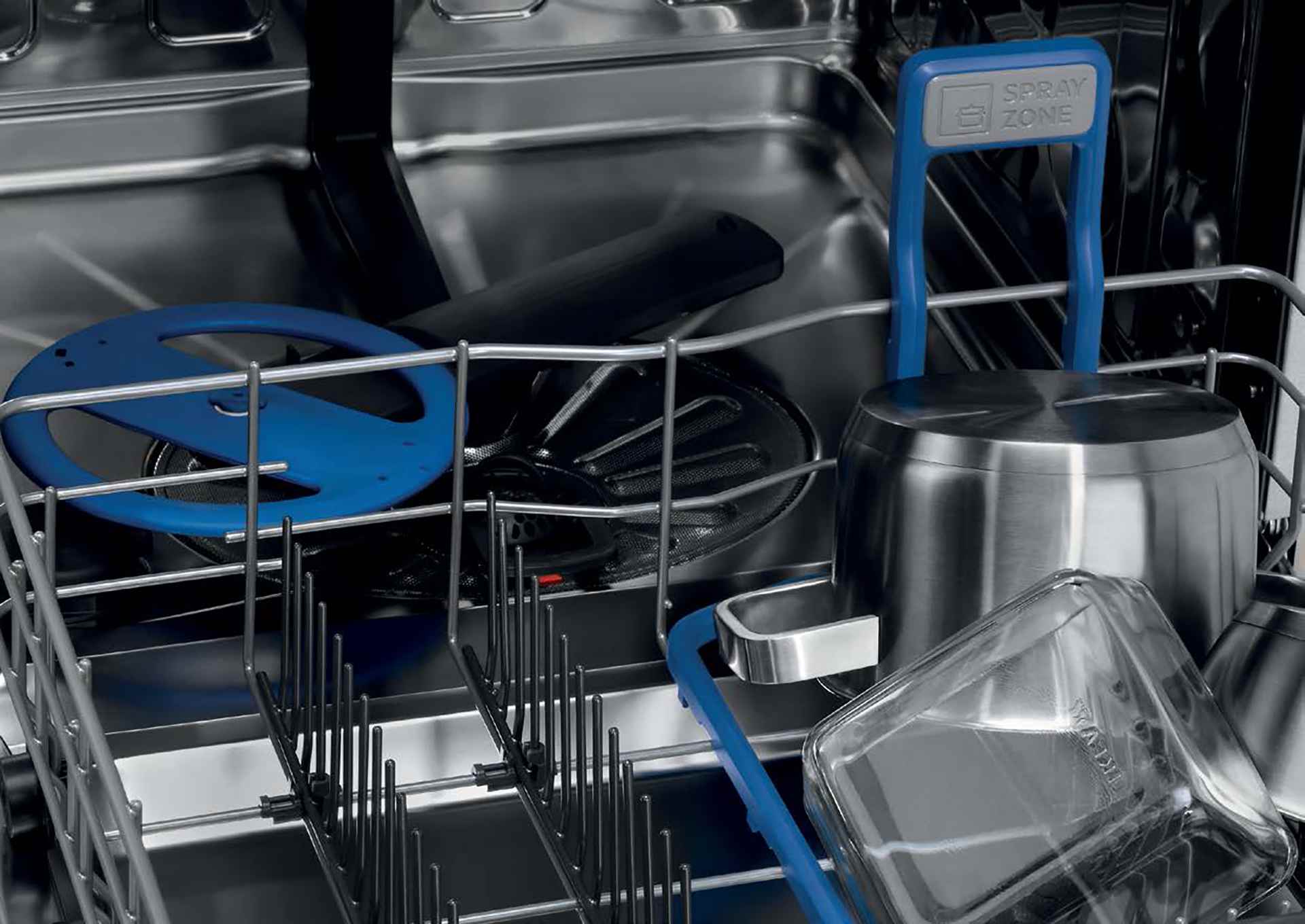 Если в семье готовят много и часто, то стоит обратить внимание на наличие в посудомоечной машине функции SprayZone. Она позволяет отмывать даже сильно загрязненную посуду.