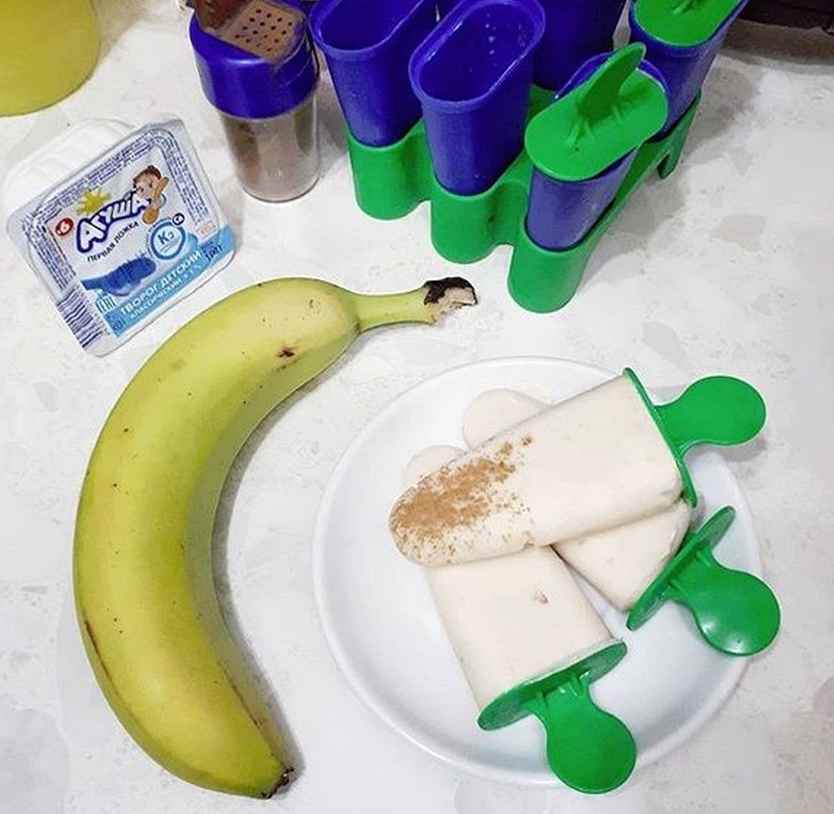 Еще один простой рецепт: банан + детский творожок. Получается вкусное и полезное лакомство для ребенка. Вместо банана можно использовать клубнику, малину и другие ягоды.