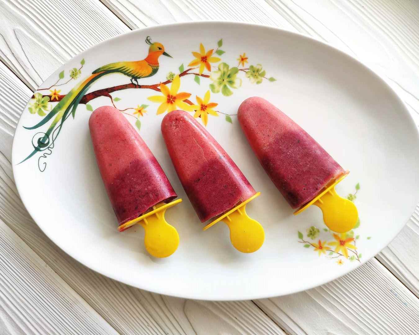 Если хочется, чтобы мороженое имело сливочный вкус, в качестве основы можно использовать греческий йогурт. Ягоды и фрукты, ваниль, сахар взбиваем в блендере, разливаем по формам и кладем в морозильную камеру на 4-5 часов.