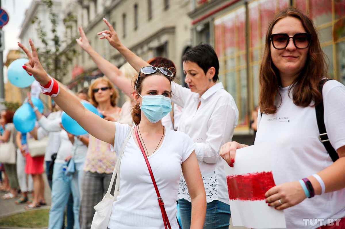 Главное, что беспокоит сегодня учителей — это жесткие задержания и пытки в изоляторе на Окрестина, о которых стало известно общественности. Учитель физики из 41 школы г. Минска Анастасия Вершок пришла на акцию, чтобы выразить свой протест той грубой силе, которую применили в отношении мирных белорусов.