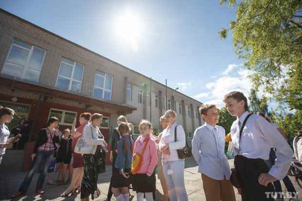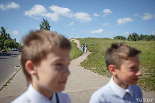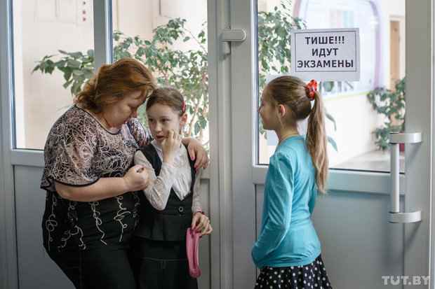 Когда четвероклассники скрываются за дверью, папы включают по мобильному интернету белорусское телевидение, и все ждут, пока женщина с экрана объявит номер контрольной работы – ее будут решать все будущие гимназисты Беларуси.
