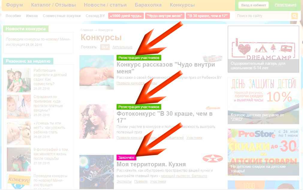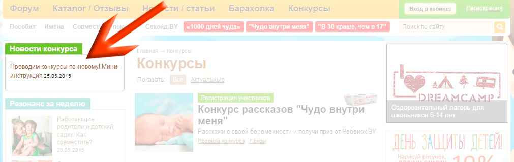 Следить за новостями по активным конкурсам Ребенок BY можно в блоке «Новости конкурса»