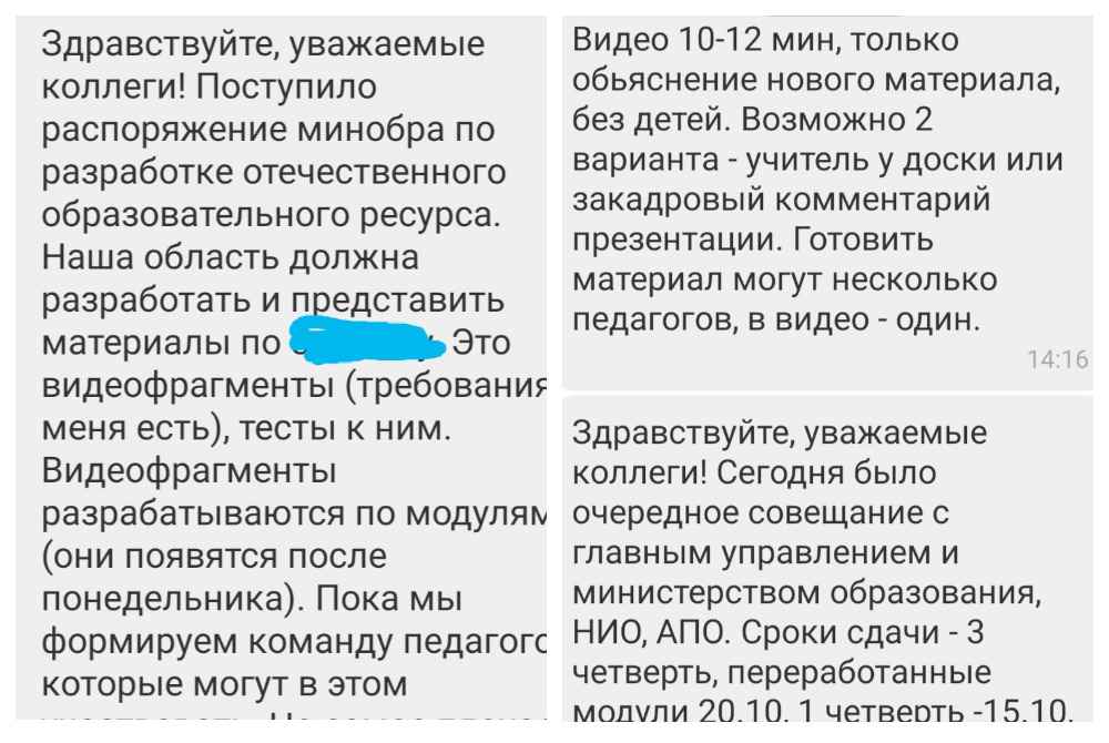 Педагоги поделились подробностями на условиях анонимности, поэтому имена изменены. По словам учителей, работа над модулями началась еще в июне, а форсировать события кураторы начали в октябре.