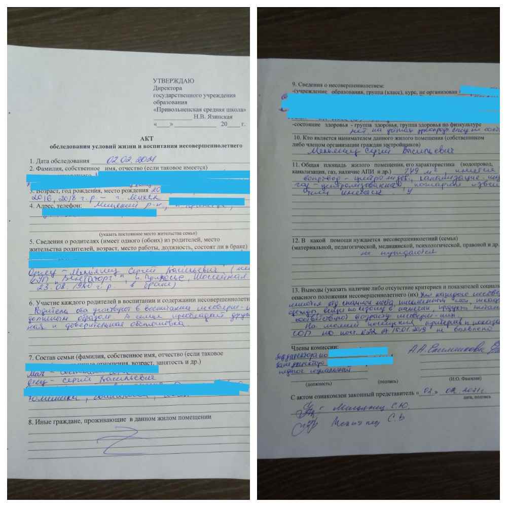 Представители школы побывали в семье Мельянцов 2 февраля. Сергей рассказывает, что у проверяющих не возникло никаких претензий. Акт обследования это подтверждает. Там отмечено, что «родители оба участвуют в воспитании несовершеннолетних детей должным образом. В семье присутствует дружественная и доверительная обстановка». После перечисления количества письменных столов, кроватей и прочих бытовых благ в графе «Вывод» значится: «На момент посещения критериев и показателей СОП не выявлено».