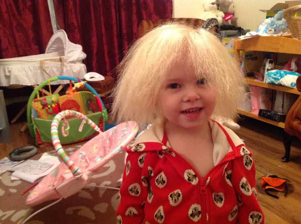 «Волосы напоминали пух или сахарную вату. Дочке было больно, когда я пыталась расчесать ее, волосы просто стояли дыбом», — говорит мама. В итоге родители бросили бесполезные попытки навести порядок на голове у дочки и просто перестали ее расчесывать.