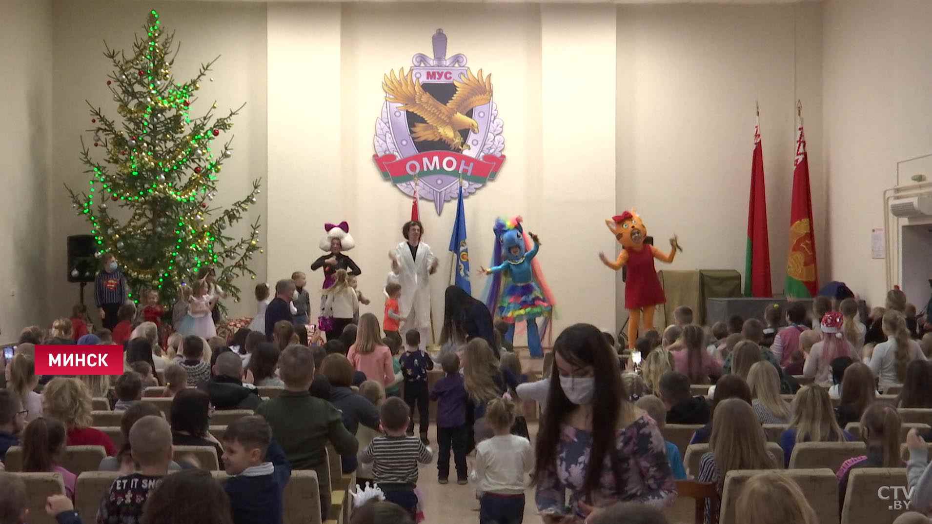 Известно, что утренник прошел на выходных в столичном микрорайоне Уручье. В нем приняли участие дети сотрудников минского ОМОНа и ребята из Радошковичской школы-интерната. В сюжете телеканала ОНТ было сказано, что накануне силовики побывали там с подарками. Предновогоднюю акцию прокомментировал начальник столичного ОМОНа Дмитрий Балаба: