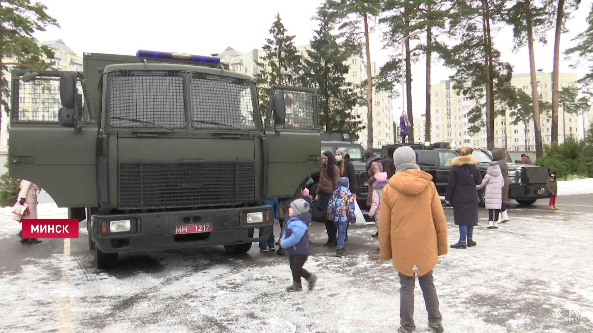Дети, которые участвовали в утреннике, рассказали на камеру, как счастливы оказаться на утреннике. Малыши, чьи отцы служат в ОМОН, заявили, что гордятся родителями: «Папа работает в ОМОН, потому что это его мечта», «Я горжусь папой, потому что он защищает Республику Беларусь».