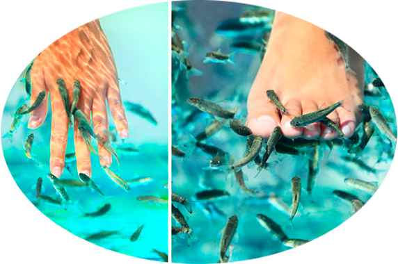 Fish spa – это пилинг кожи рук и ног тропическими рыбками Гарра Pуфа.