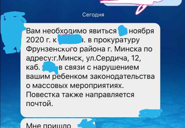 Родители учеников из 6-й гимназии Минска сообщили, что на этой неделе их вызывали в прокуратуру Советского района Минска. Причина — участие старшеклассников в «сидячей забастовке». Аналогичная ситуация в 4-й минской гимназии — родителям присылают повестки с информацией о том, что дети нарушили законодательство о массовых мероприятиях.