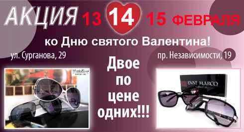 Только три дня акция для Всех влюбленных! Ваш стаж и статус не имеет значения! Компания «НьюЛайнБи» в своих магазинах оптики проводит акцию