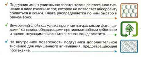 - внутренний слой подгузника пропитан натуральным фитонцидом кипариса, который обладает противомикробным действием. «Фитонциды» — биологически активные вещества, предотвращающие рост бактерий. В медицинской практике применяют свойства лука, чеснока, др. растений, содержащих фитонциды. Мы все знаем, что для профилактики простудных заболеваний мы применяем лук и чеснок, а точнее помогают нам их фитонциды. Самые универсальные по своему действию — фитонциды хвойных пород. Антимикробная активность фитонцидов кипариса значительно выше, чем у сосны, пихты и можжевельника. Они подавляют развитие многих болезнетворных микробов, в том числе стафилококков;