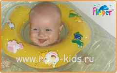 Российская компания РОКСИ совместно со швейцарскими специалистами разработала надувной круг на шею для плавания и купания малышей под торговой маркой «Flipper».