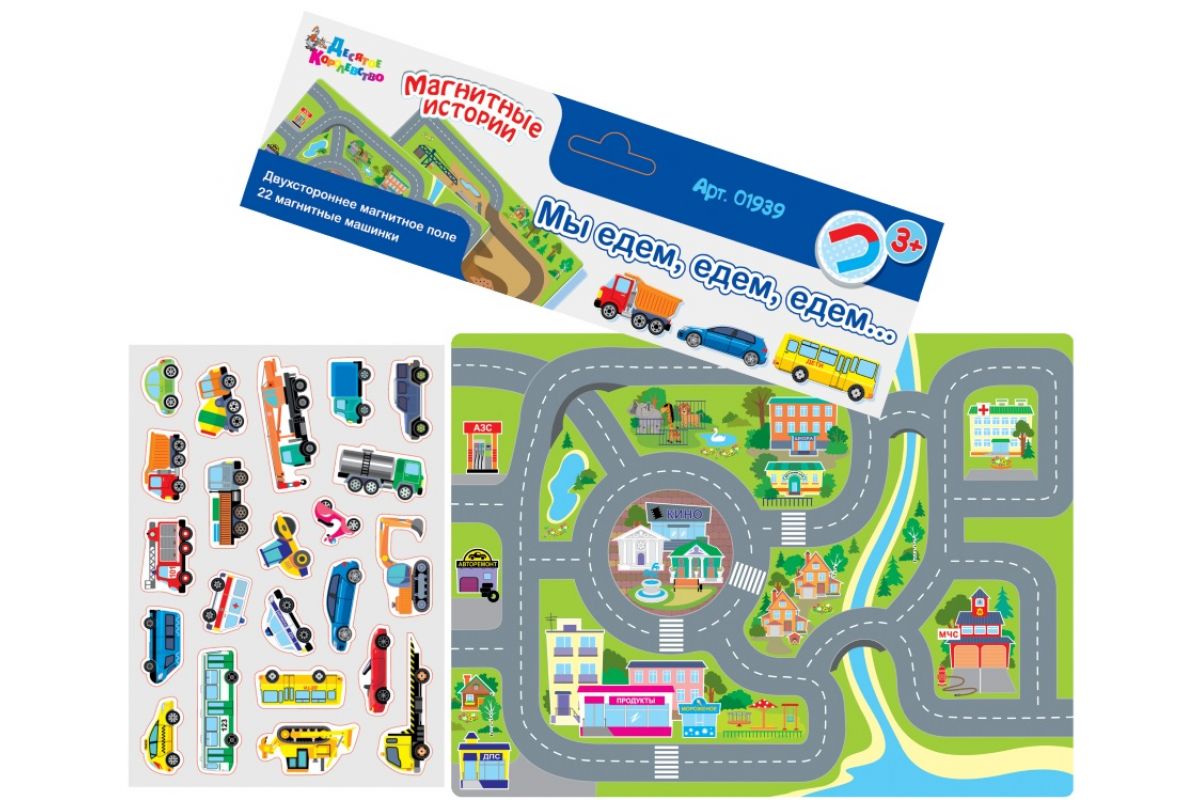 А мальчикам можно купить набор, в который входит магнитная доска с городскими улицами и машинки.