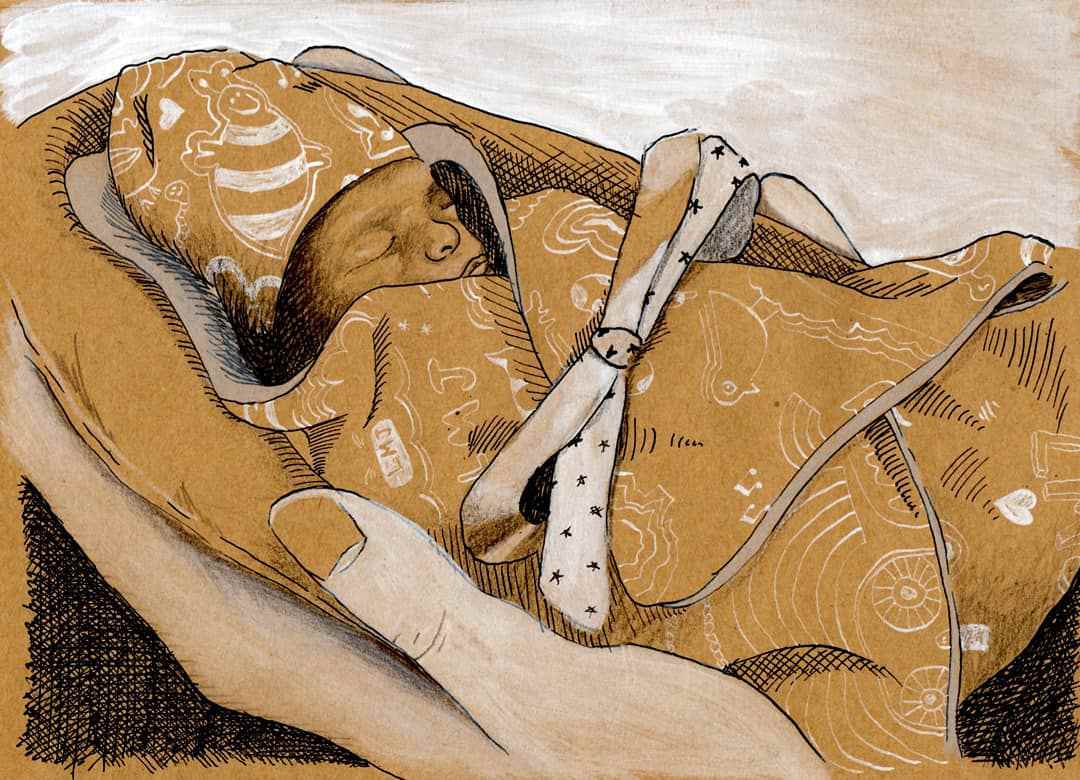 На этих трогательных, выполненных в сдержанных тонах рисунках, изображены младенцы с закрытыми глазами в уютных мягких кроватках или на руках у родителей. Кажется, что они просто спят сладким сном. На самом деле это мертворожденные, умершие при родах или ушедшие вскоре после своего появления на свет малыши.