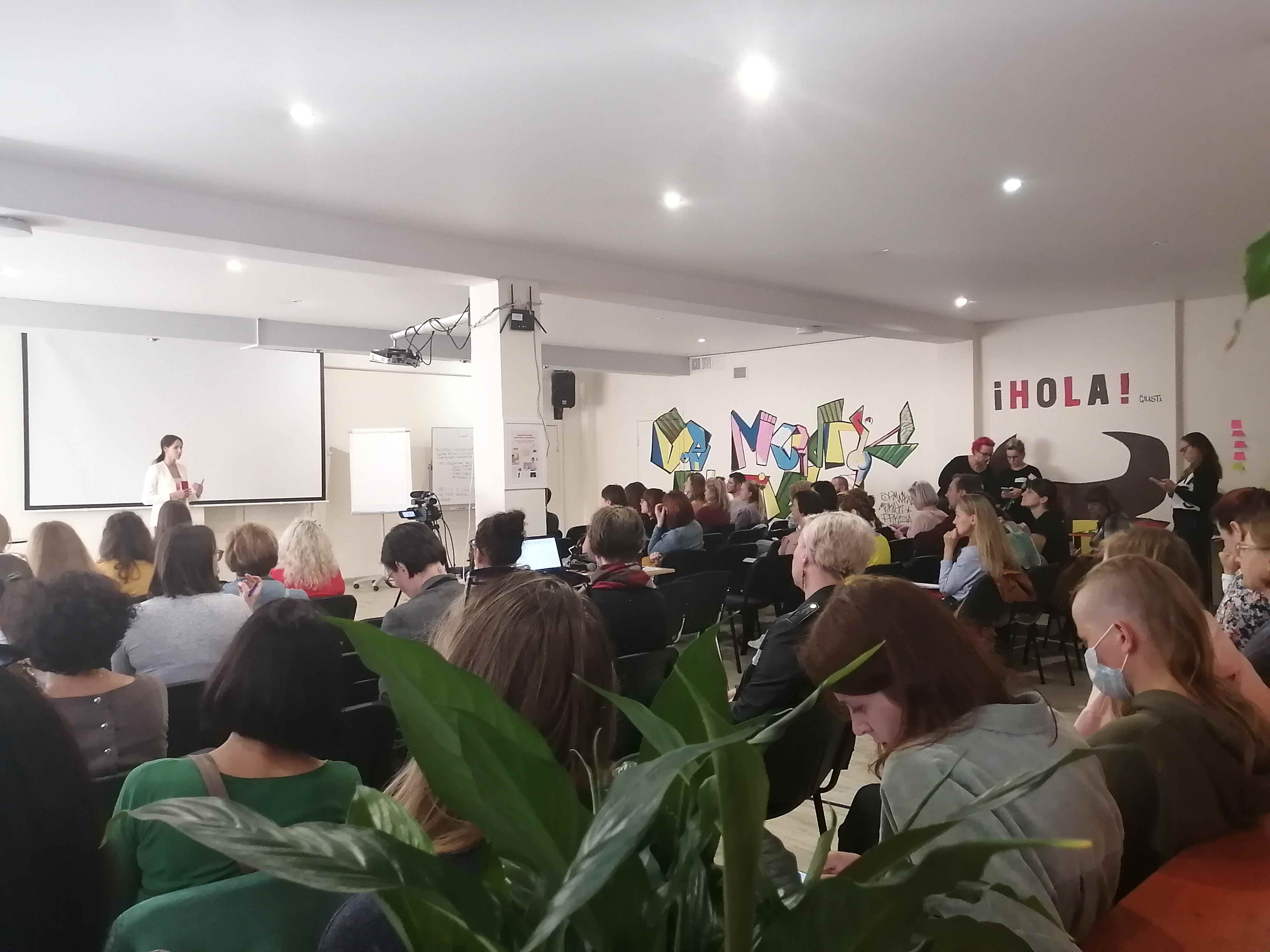 Полина — тоже мама двоих детей, но в школе учится пока только старшая дочка. Минчанка пришла на конференцию, чтобы пообщаться с другими родителями, набраться опыта и по возможности забрать ребенка в этом году из школы. Однозначного решения пока нет, признается мама.