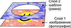 Изображение, которое мы видим – это результат их наложения. Мы просто свою фотографию помещаем в отдельном слое под слоем с рамочкой.