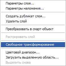 Если есть необходимость еще раз изменить размеры фотографии, то выбрав слой с фотографией на изображении нажимается правая клавиша мыши и в открывшемся меню выбирается меню «Свободное трансформирование»