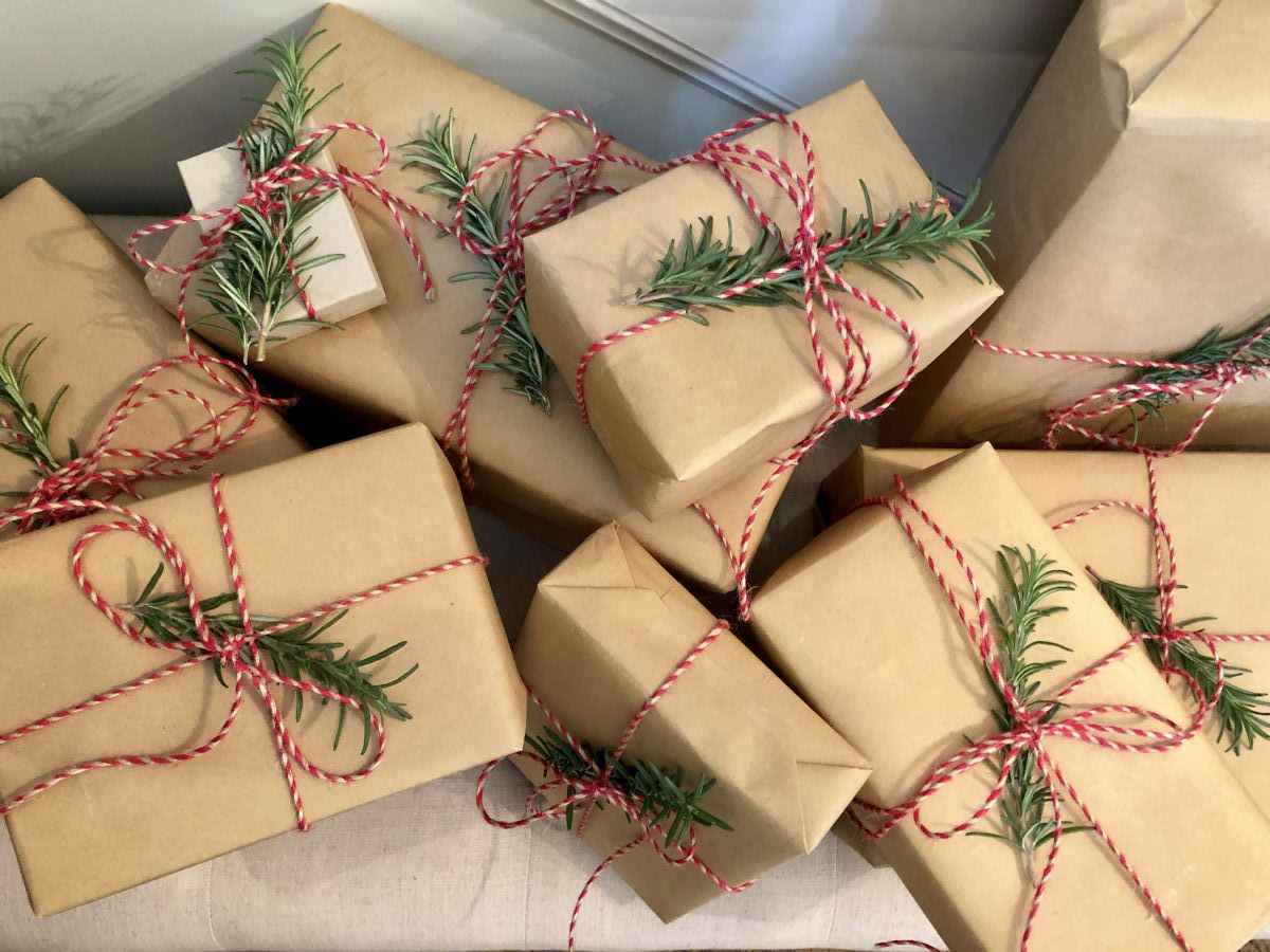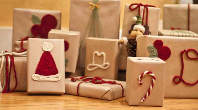 Если дома нет красивой упаковочной бумаги, подойдет обычная газета. Дополните ее тематическими элементами: красной лентой, веточками или шишками, маленькими новогодними шариками. Получится необычно, но не менее красиво, чем с магазинной упаковкой, которая уже многим наскучила.