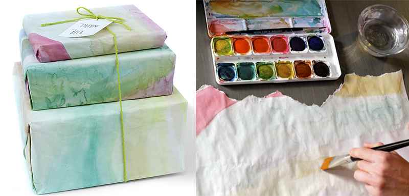 Дома есть только обычная белая бумага, а надо срочно упаковать подарок? Найдите краски, нарисуйте с ребенком на бумаге акварельные разводы и дайте высохнуть. Упаковка готова.
