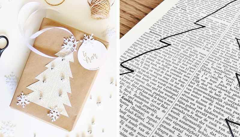 Вариант для ленивых — елочка, вырезанная из бумаги и приклеенная к упаковке. Дополнить ее можно любыми декоративными элементами, которые есть под рукой.