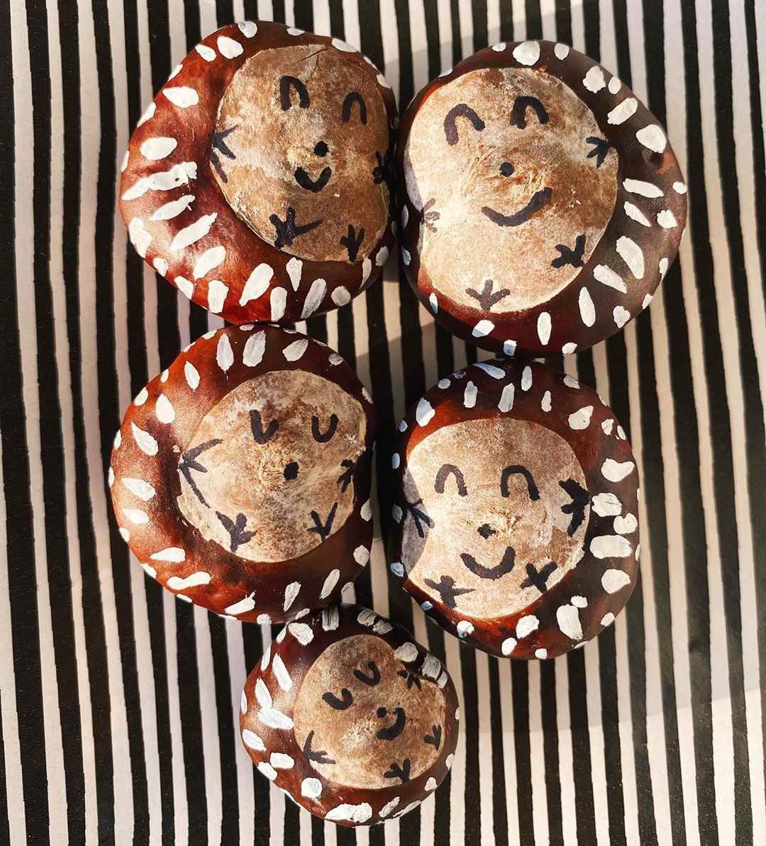 Если дети любят рисовать, можно делать не аппликации-фигурки, а раскрашивать листья и каштаны красками.