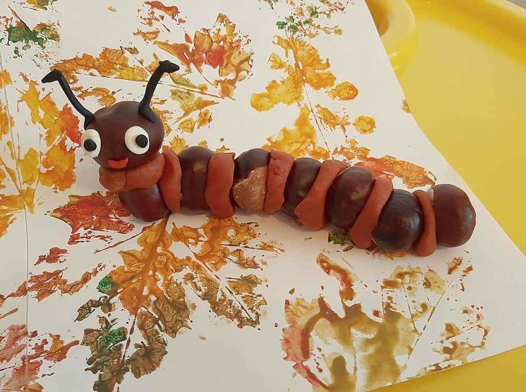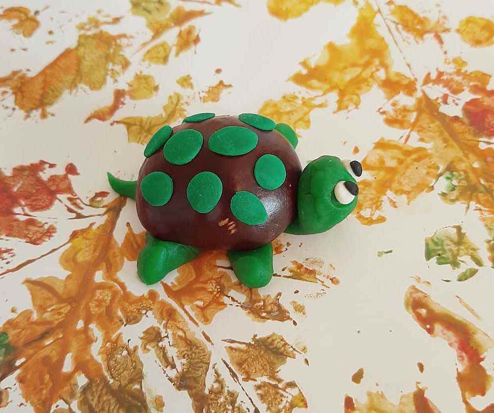 Довольно просто сделать из каштанов гусеницу или черепашку. Добавить нужно только пластилин.
