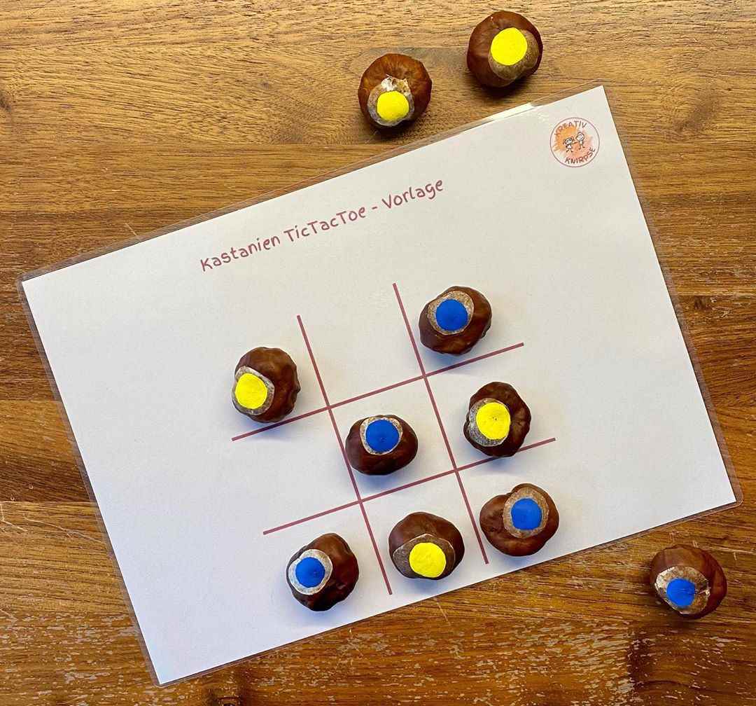 Или сделать из каштанов необычные «Крестики-нолики». Такая необычная игра точно понравится детям.