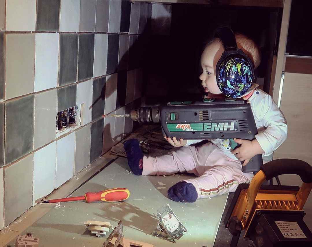 Малышка Аликс к году успела пожить очень насыщенной жизнью (если судить по ее обширному фотоальбому). Тут и прогулки по канату, натянутому на большой высоте, и забавные игры с дрелью, розетками, режущей машинкой и прочими опасными штуками. Девочка гуляет по крышам домов, управляет авто, пьет с папой пиво, готовит еду, сидя на плите, в общем, очень даже весело проводит время.