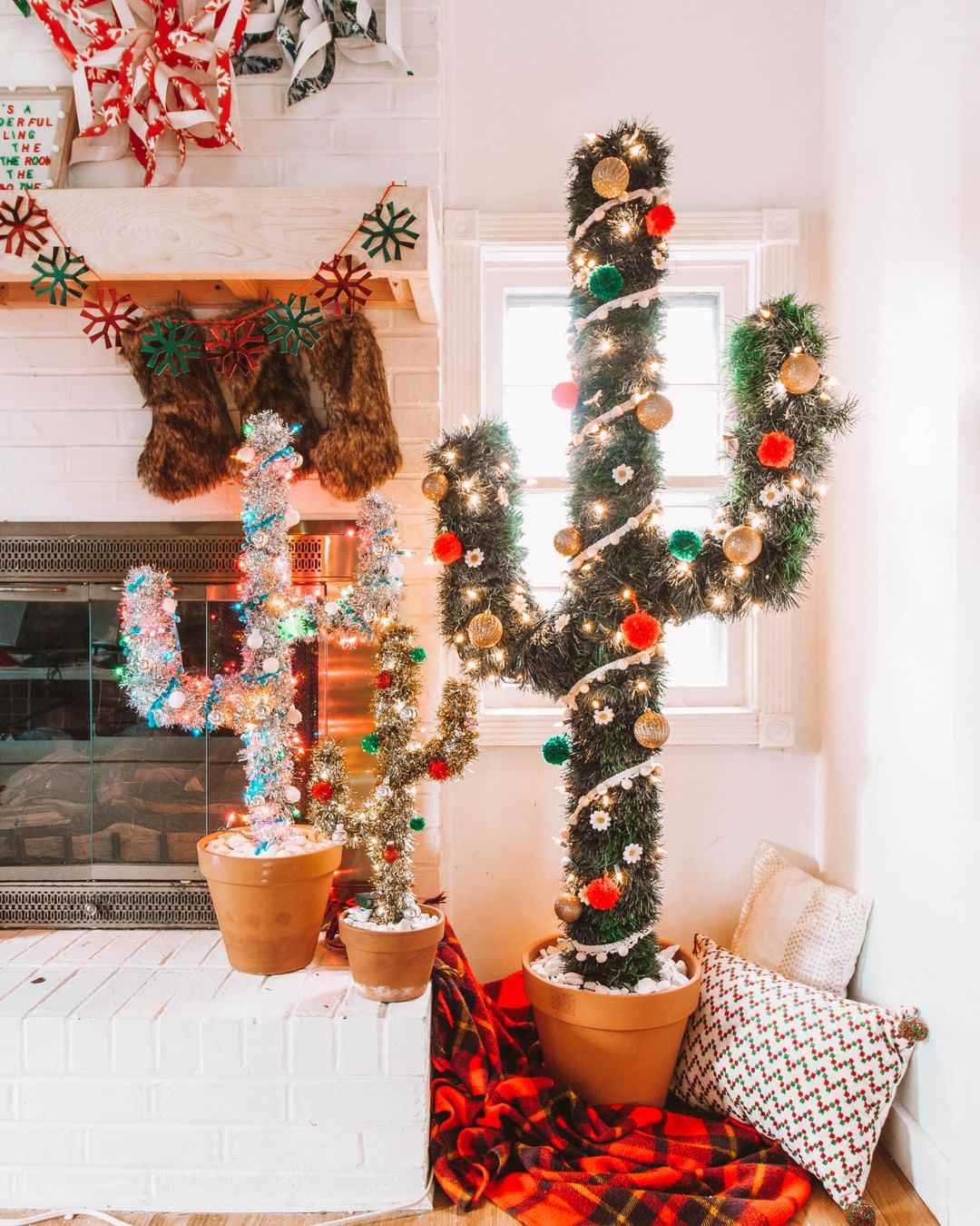 Наряжать к Новому году можно и комнатные растения. Особенно повезло тем, у кого дома растут кактусы, которые по высоте почти не уступают елкам. Украшать это праздничное растение нужно осторожнее, зато кактус не придется выбрасывать или разбирать, как в случае с живыми и искусственными елками.