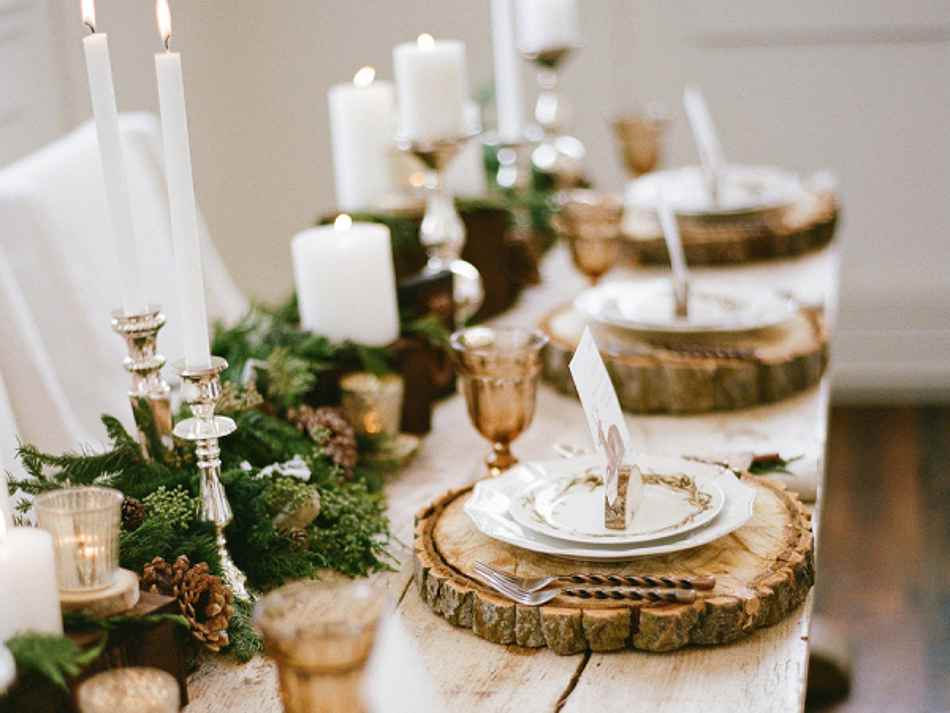 Центральными элементами также могут стать небольшая елочка, фруктовница, ваза с украшениями или праздничный торт.