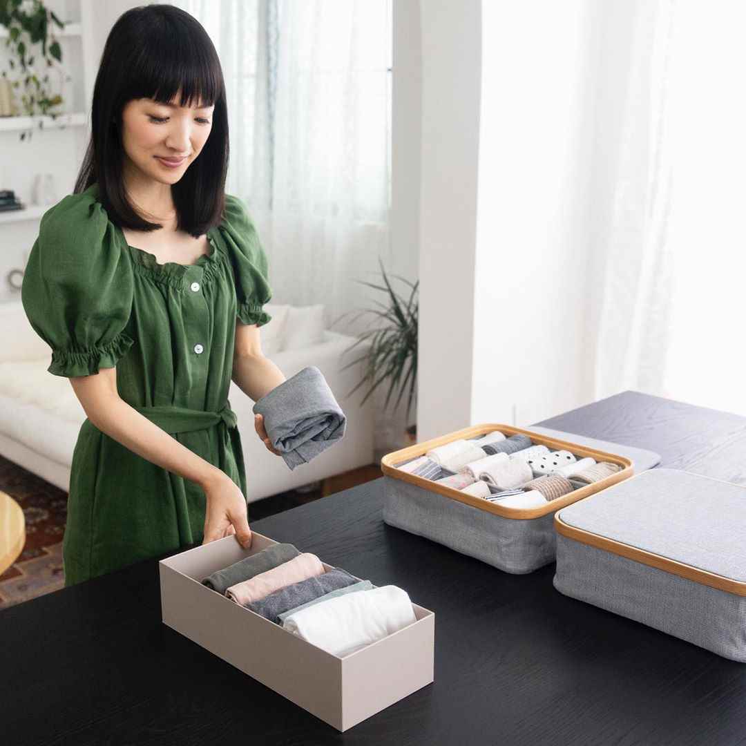 Японка Мари Кондо стала известна во всем мире благодаря своему необычному методу хранения вещей: она предложила складывать одежду не стопками, а вертикально в виде «фирменных» прямоугольников. И это лишь один из принципов, который помогает ей поддерживать порядок в доме с маленькими детьми. Мари —мама двух девочек.