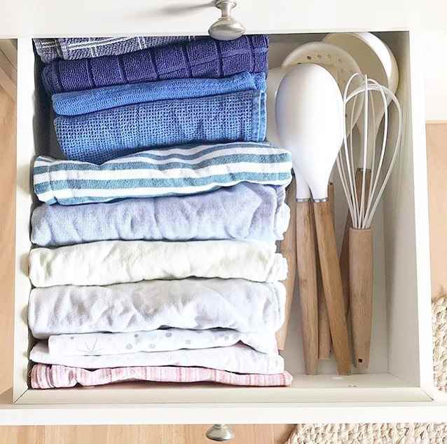 Такой принцип хранения касается не только одежды. Большинство текстильных вещей — от полотенец до постельного белья — удобнее ставить вертикально в ряд, а не складывать горизонтально стопками.