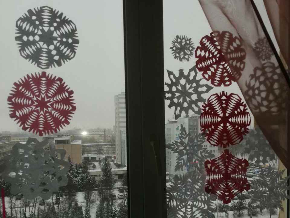 Снежинки в этом году дети вырезают не только из белой, но и из красной бумаги.