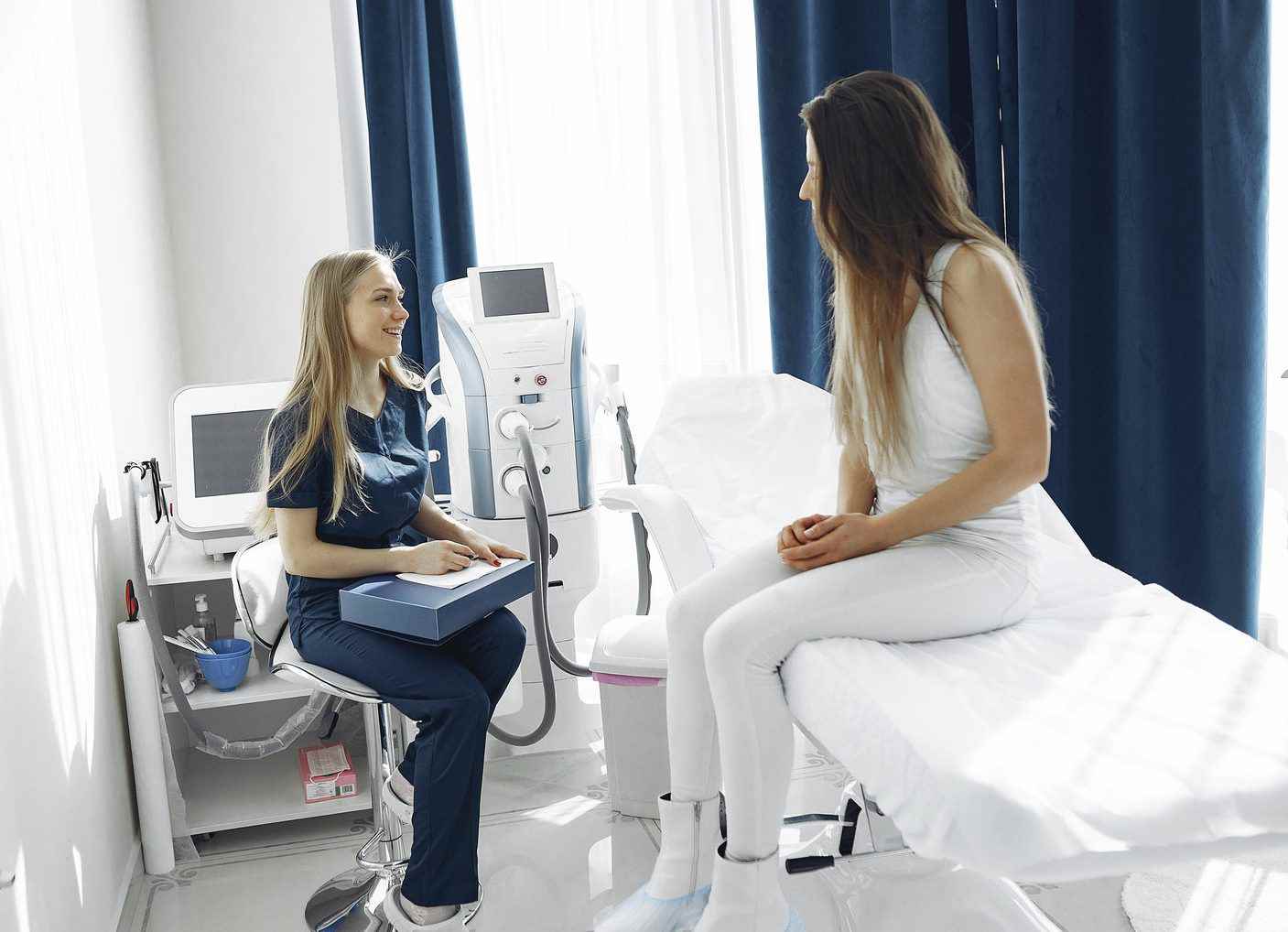 На первом приеме гинеколог обязательно осматривает женщину на кресле, чтобы оценить состояние шейки матки, определить размеры матки, исключить внематочную беременность и другие патологии органов малого таза. Врач берет мазки на онкоцитологию, флору, ИППП (трихомонада, микоплазма гениталиум, хламидия), посев на гонорею, бакпосев на чувствительность к антибиотикам и противомикробным средствам (антимикотикам).