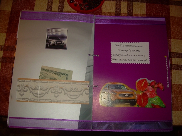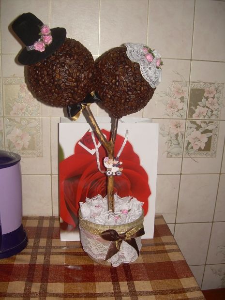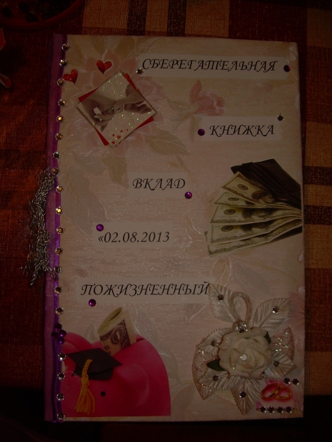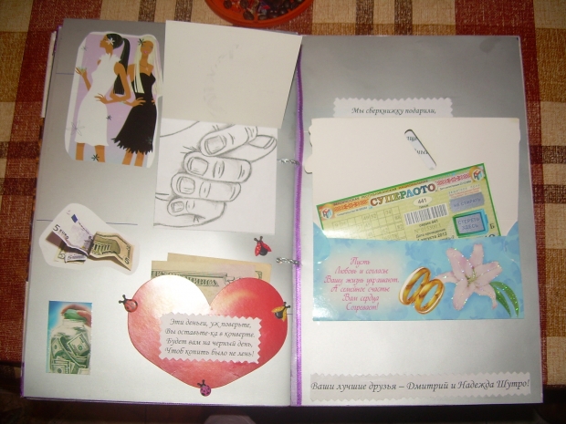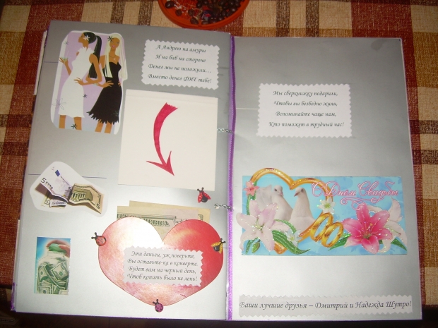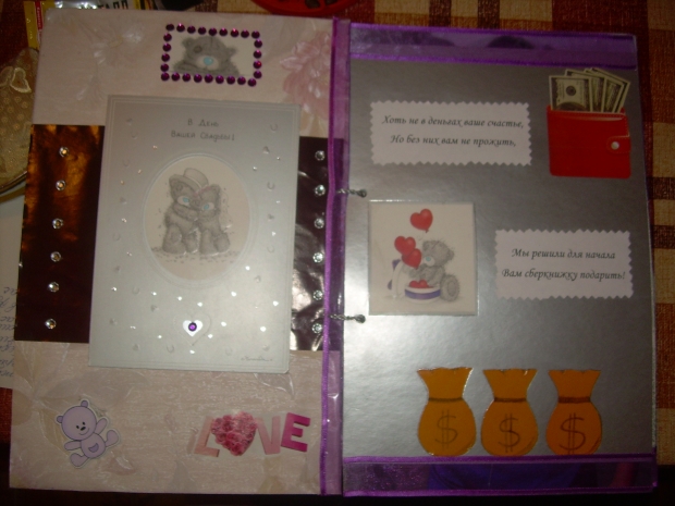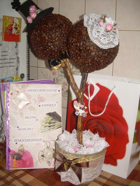 Завтра идем на свадьбу к крестному папе наших малышей. Это наши самые лучшие друзья и поэтому захотелось подарить им не просто открытку с деньгами и букет, кторый через несколько дней завянет, а что-нибудь этакое на память. И вот, что у меня получилось…