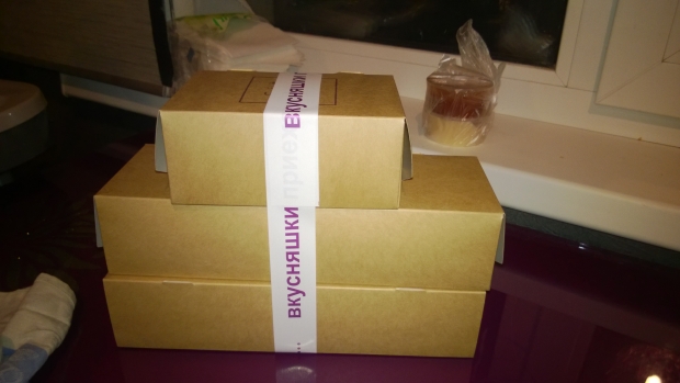 Помимо этого я сегодня решила изменить доставке Сушихаус и заказала в неком малоизвестном Fusion, хотя и был риск, но опять же, не пожалела. Не то чтобы я какой-то офигенный ценитель японской еды, я не могу отличить правильные или неправильные роллы, я просто оцениваю вкус. И это вкусно. Обалденно вкусно, и приехал заказ вот так