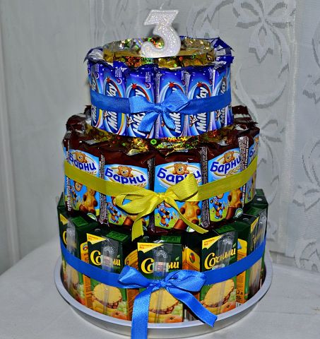 Вот это да!!! До такого даже наша бабушка не додумалась, а она у нас фантазерка и мастерица еще та... Все, осенью отдам Женю в ясли, а на 3 годика соорудим ему такой тортик:) Спасибо за идею:)