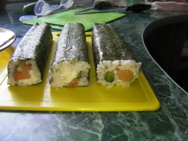 --тока ещё надо научится крутить шоб сверху рыбень была и рис