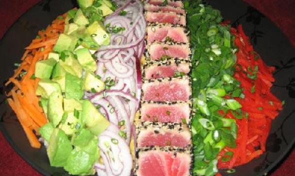 Я делала такой салат на Д.Р.!!Очень вкусный, а главное легкий салатик!!!!!