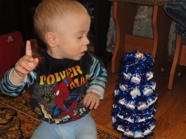Посмотрела я на елки при сравнении надо исправлять в прошлом году было лучше.Оказывается чем ребенок старше тем сложнее сохранить елку в первоначальном виде.