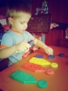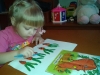 Nadin_85: На лист приклеили колобка, я нарисовала цветные крестики, на которые нужно было приклеить наклейки соответствующего цвета. Настюшка и с этим заданием справилась на отлично