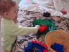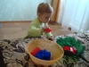 Я бы сказала, что ему больше понравилось забрасывать фигурки в миски, нежели подбирать по цвету.